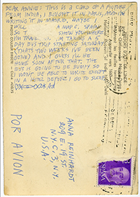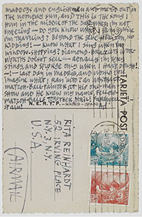 Among the archival holdings of the Ad Reinhardt Foundation are an extensive collection of Reinhardt's letters and postcards to his family and his original travel journals, which provide valuable insight into what Reinhardt saw, experienced, and observed when visiting a particular place. Digitized archival materials related to his travels to Spain can be viewed below.